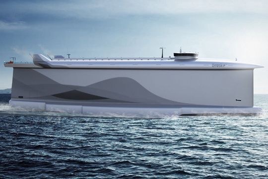 Questa nave ibrida utilizzerà il vento e il gas naturale liquefatto (GNL) per andare avanti. Il vento relativo che già svolge un ruolo cruciale nella progettazione di treni, aerei, aerei, eliche e barche a vela verrebbe qui utilizzato per una nave mercantile. Ispirato dall'industria aerospaziale e dal mondo della vela, Vindskip è progettato per utilizzare la forza del vento per spingere se stesso. Il suo scafo, dal design unico, ha la forma di una lamina di metallo simmetrica, che utilizza il vento apparente per generare un ascensore aerodinamico (la forza che permette ad un aereo di alzarsi e rimanere in quota) che tira la nave nella direzione desiderata. Questo sistema, chiamato "Sistema di energia eolica di Vindskip", sarà completato da un sistema di propulsione a GNL. Infatti, la propulsione eolica non sarà sempre possibile e invariabile, quindi un regolatore di velocità sarà in grado di controllare l'avanzamento della nave e innescare il sistema di propulsione a GNL, che funzionerà dinamicamente con la propulsione eolica. L'uso simultaneo di queste due tecnologie garantirà così la velocità di crociera del Vindskip.