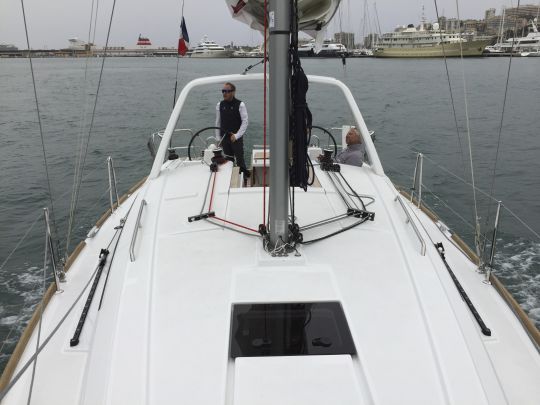 Sebbene l'Océanis 35 dia l'impressione di navigare su una barca molto più grande delle sue dimensioni (a causa del suo baglio), ci richiama all'ordine quando dobbiamo muoverci in coperta. I ponti laterali sono ingombri di sartie basse, che costringono a salire sulla tuga per passare.