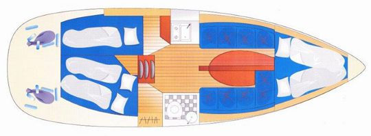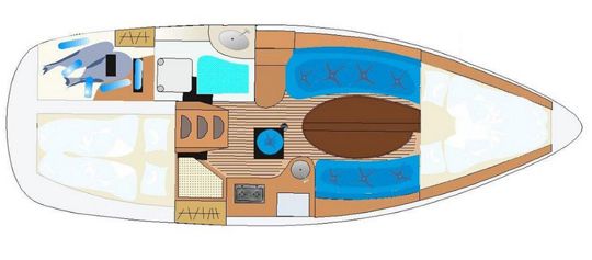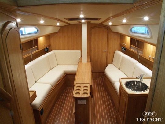 Con un'altezza di 1,87 m sotto le sbarre, il movimento nel salone non è limitato. La planimetria, che può essere modificata secondo i gusti dell'armatore, offre 2 o 3 cabine doppie. Il primo, installato nella parte anteriore e separato dal salone da una parete divisoria. Gli altri due sul retro. La cabina opzionale riduce il volume del bagagliaio posteriore.