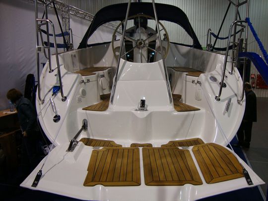 La particolarità di questo piano risiede nella sporgenza dell'asse posteriore. Sale su entrambi i lati del pozzetto per offrire un bel volume e altezza sotto le travi delle cabine di poppa. Questo piano fornisce anche una buona protezione per la cabina di pilotaggio. Il TES 32 è disponibile nella versione a barra o con timone a ruota. Questa opzione, se è gratificante per l'armatore (si ha l'impressione di avere una grande barca sotto il timone), occupa molto spazio nel pozzetto.