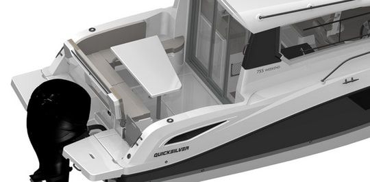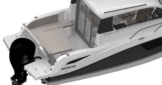 Nella versione Stern-Drive (entrobordo), il sedile posteriore a panca pieghevole (3 possibili inclinazioni), l'estensione del sedile posteriore a L e il prendisole posteriore sono di serie. Questo pozzetto modulare permette quindi a tutti di adattarlo ai propri gusti.