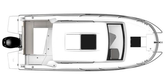 L'accesso alla cabina avviene attraverso porte scorrevoli in vetro. La cabina è incorniciata da ampie finestre per una luce di 360 °C. C'è una cabina di pilotaggio ergonomica, dove la cabina di pilotaggio può essere equipaggiata con un GPS/chartplotter, una zona pranzo per 4 persone con una cucina completamente attrezzata.