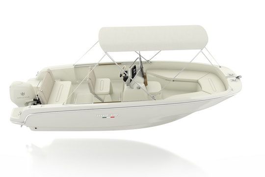 Il 190 FX è quindi il modello entry-level della gamma FX, con un interessante rapporto prezzo/prestazioni di 11.500 euro (prezzo base IVA esclusa). Con la stessa lunghezza del 200 FX - 6,1 m - è una barca robusta e solida che non fa sacrifici in termini di comfort e abitabilità (finiture lussuose e raffinate). La sua forma arrotondata dello scafo ha una profonda carena a V che gli permette di tagliare le onde e di andare veloce e una motorizzazione fuoribordo (come tutti gli altri modelli della gamma).