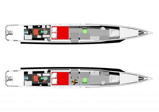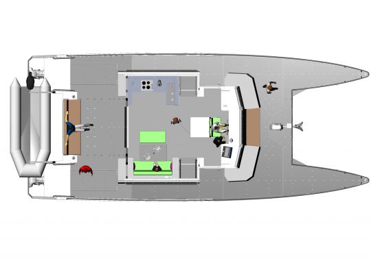 "Questo catamarano è destinato ad un mercato privato, ma può essere utilizzato anche da ONG per missioni di ricerca grazie alla modalità 100% elettrica. Essendo ibrida, è in grado di percorrere lunghe distanze utilizzando solo energia solare. L'energia termica sarà utilizzata principalmente per recarsi in una specifica area di navigazione. L'altro vantaggio è che si può navigare in un'area protetta fino a 6 nodi in modalità 100% elettrica e quindi preservare il fondo marino, non inquinare e navigare in silenzio" spiega Angi Le Floch, il direttore dell'azienda.