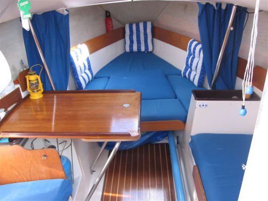 La tuga del Kelt 620 estende l'intera larghezza dello scafo - senza ponti laterali, come il Corsaro. È quello che chiamiamo un ponte ormeggiato. E qui il ponte degrada dolcemente verso prua, facilitando gli spostamenti. L'hardware del deck, se originale, merita un serio aggiornamento, soprattutto sui modelli più vecchi. Lo stesso vale per il cofano e i bauli, che sono stati notevolmente migliorati rispetto ai nuovi 620. Quest'ultimo aveva anche un tetto a scomparsa. La cabina di pilotaggio non offre il comfort di un'unità moderna, ma rimane confortevole.