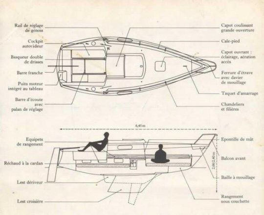 Con le sue opere vivaci e gli spigoli arrotondati, il Kelt 620 presenta un design tipico del famoso Philippe Harlé - l'architetto di Muscadet e Sangria. Lo scafo del 620 ha una superficie bagnata limitata, che lo rende facilmente maneggevole in condizioni di luce. Nella brezza, questo piccolo cruiser non apprezza il fatto di essere sovracopiato. La superficie della vela di prua deve essere notevolmente ridotta - il genoa è tre volte più grande della randa; il Kelt 620, se non sbanda troppo, si dimostra molto navigabile e capace di vincere controvento anche in mare grosso. Preferisco il modello a chiglia, che è molto più potente di bolina, si può facilmente allungare sulle gambe e che alla fine dà "solo" 40 cm di pescaggio al gommone zavorrato. Nota: gli ultimi gommoni costruiti erano dotati di gambe telescopiche.