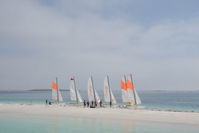 È ora di fare kitesurf! Sotto, il vento fa fatica a sostenere il pilota. Il vento non sarà troppo forte per fare le prime virate e per i più esperti, tra 20 e 25 nodi, i piloti possono già raggiungere una bella quota.