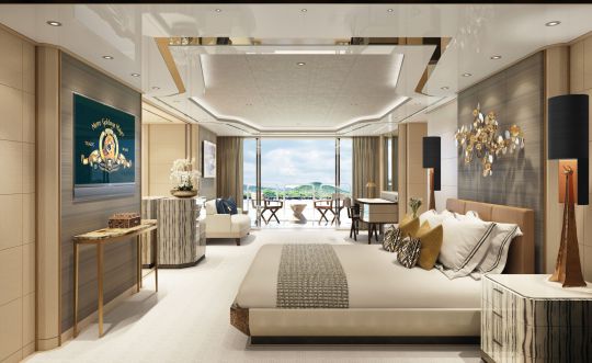 All'interno, l'interior design è firmato dallo Studio Indigo. L'idea è quella di massimizzare la percezione dello spazio e la fluidità, quindi le prospettive sono diverse, tra gli spazi per renderli più grandi, più leggeri e più luminosi. La cabina armatoriale dispone di ampi balconi apribili per ampliare lo spazio abitativo.