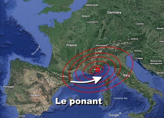 È così che, per analogia, i marinai che attraversano il Mediterraneo chiamano il vento proveniente da ovest come ponente.