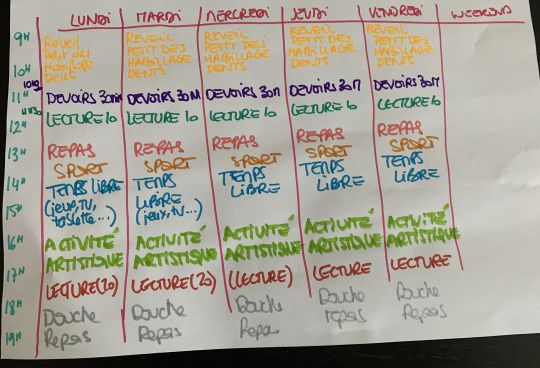 Non siamo in classe, quindi non aspettatevi di fare 6 ore di lezione al giorno. Se l'apprendimento a scuola è importante per l'educazione dei vostri figli, è altrettanto importante essere aperti al mondo e alla natura. Tuttavia, attenetevi a un programma che permetta al vostro bambino di avere un ambiente educativo. La mattina sarà divisa tra 30 minuti di compiti, 20 minuti di lettura e 30 minuti di tempo libero. Il pomeriggio sarà dedicato ad un'attività artistica o ad una scoperta sulla terraferma..