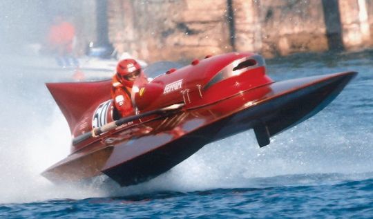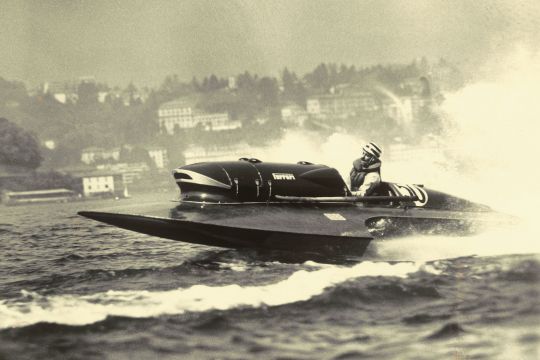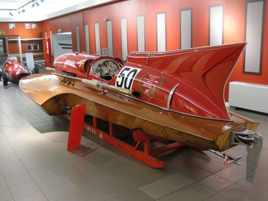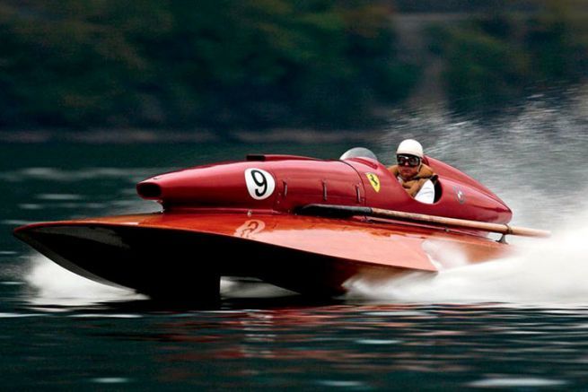 Negli anni '50, le case automobilistiche facevano a gara per stabilire vari record sulla terraferma, ma anche sull'acqua. Alfa Romeo, Maserati e Ferrari hanno sfidato la loro rivalità adattando i blocchi motore delle auto a piccole propaggini della categoria sotto gli 800 kg. I corsi d'acqua interni sono teatro di battaglie di velocità che hanno fatto sparire molti piloti. Questa Thunderboat è il frutto della collaborazione con il pilota Achille Castoldi e lo stesso Enzo Ferrari.