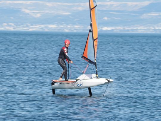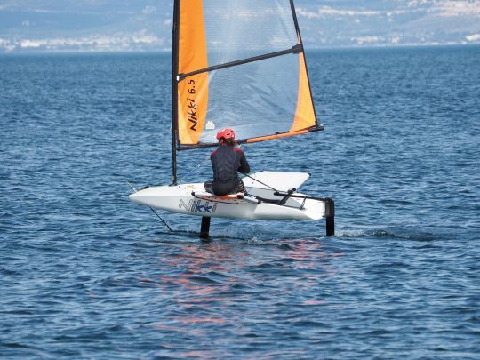 Ben impostato sul baglio, il Nikki decolla progressivamente e si assesta rapidamente sui suoi foil. La regolazione con la randa è fluida e il timoniere si orienta rapidamente. Nonostante le condizioni di luce del nostro test, il Nikki raggiunge una velocità impressionante e dà al timoniere una grande sensazione.