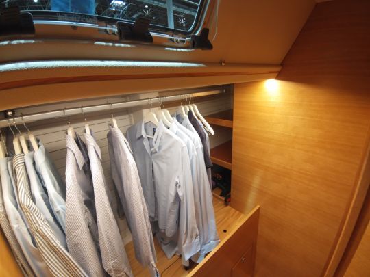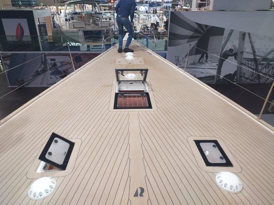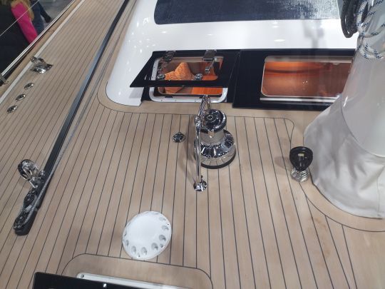 L'enorme ponte di prua è un invito a rilassarsi all'ancora, con poca necessità di andarci quando si naviga, dato che tutte le vele sono avvolte. Per quanto riguarda gli allestimenti, l'onnipresente acciaio inox, anche sugli argani, aggiunge un'eleganza classica.
