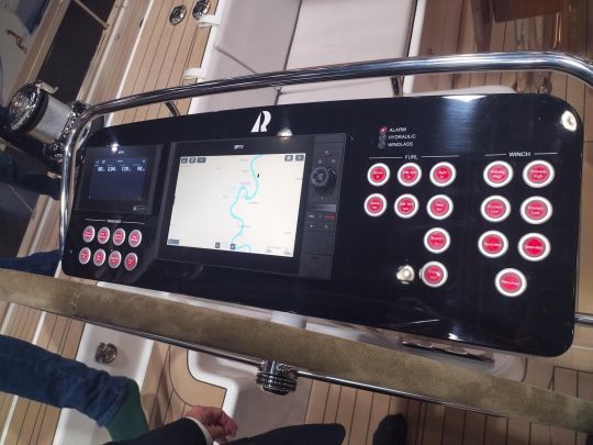 Fedele al DNA di Hallberg Rassy, il nuovo 69 piedi è organizzato intorno al suo pozzetto centrale. Ci sono due postazioni di guida, ben equipaggiate con tutti i comandi necessari per governare lo yacht.