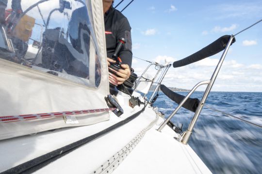 La velocità 1 non offre alcuna riduzione. Consente di tirare una scotta molto rapidamente. Si attiva premendo un pulsante sulla parte superiore del verricello. La marcia 2 cambia automaticamente ruotando nella direzione opposta. Infine, l'ingranaggio 3, il più alto, viene inserito ruotando la manovella nella stessa direzione dell'ingranaggio 1. È molto intuitivo da usare. L'utilizzo è molto intuitivo.