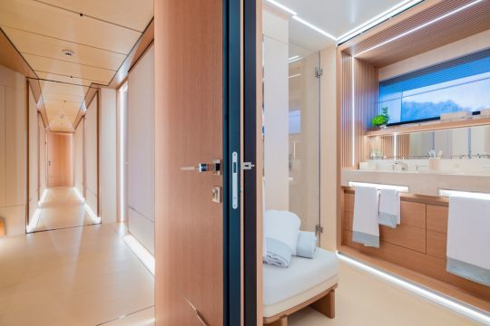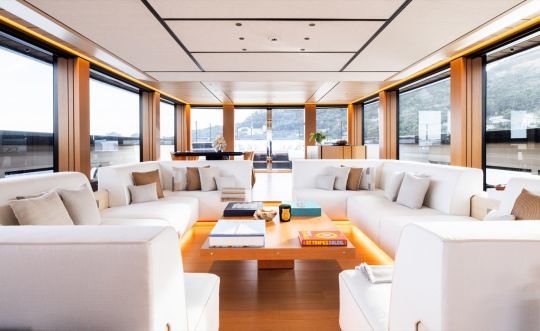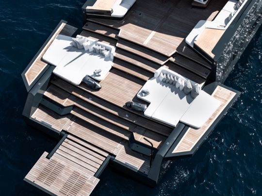 Lo yacht è progettato per soddisfare le esigenze dei suoi armatori, offrendo spazi per il relax e il tempo libero adattati alle loro necessità. Il ponte di poppa è un esempio di questa modularità, con paratie abbattibili, sedute multifunzione e un tavolo hi-lo in teak.