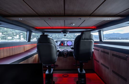 Alimentato da quattro motori Volvo Penta, SAN ha una velocità massima di 23 nodi e un'autonomia di 1400 miglia nautiche. Questa potenza è accompagnata dall'efficienza energetica, esaltata dalla configurazione bassa del pozzetto, che rende la struttura più leggera senza compromettere la funzionalità.