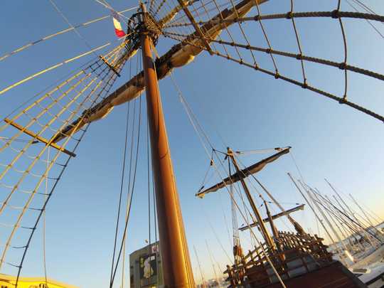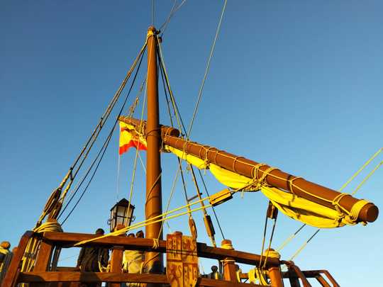Tutto il resto è fatto alla vecchia maniera. I 250 m2 di vele sono manovrati solo con carrucole e bisogna salire sull'albero per spiegare le cinque vele a bordo.