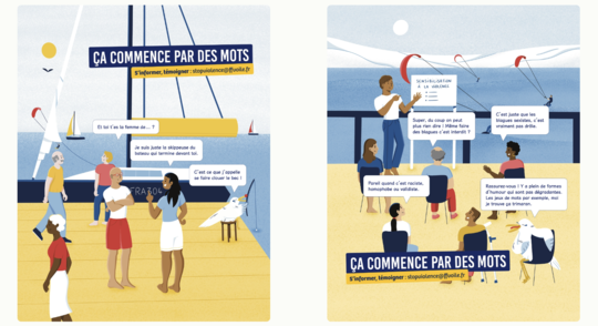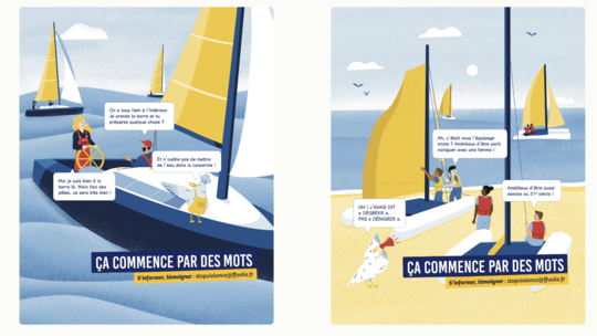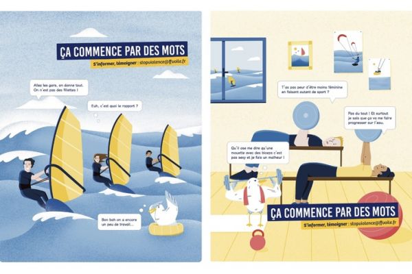 - Il "> La campagna affronta diverse forme di violenza, sia essa verbale, psicologica, fisica o sessuale. Commenti sessisti, battute umilianti, comportamenti inappropriati e aggressioni sono tutte situazioni che la FFVoile vuole sradicare. L'obiettivo è individuare e prevenire qualsiasi forma di violenza che possa nuocere al benessere dei suoi membri. Questi diversi comportamenti e situazioni sono illustrati nell'opuscolo sotto forma di fumetto.