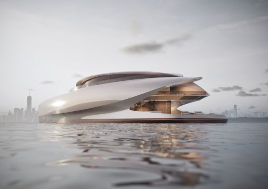 Il design esterno asimmetrico si ispira alla ninfea e presenta una disposizione su più ponti, combinata con un design ad alta efficienza energetica per migliorare le prestazioni energetiche attraverso un approccio olistico. I ponti sovrapposti creano una disposizione a pianta aperta che massimizza lo spazio e la fluidità in tutto lo yacht. In combinazione con ampie finestre e pareti interne in vetro, questo design offre un impatto visivo con viste estese e prospettive diverse.