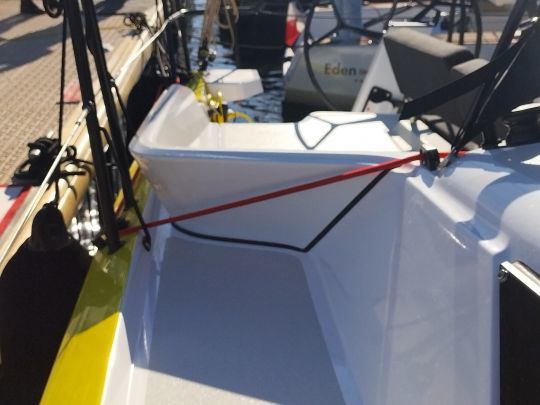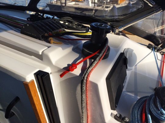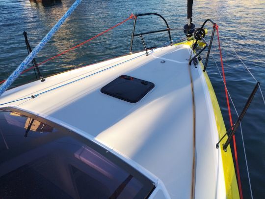 Il layout di coperta rimane fedele agli standard RM, con drizze e scotte che ritornano ai due winch su entrambi i lati del companionway. Altri due winch, posizionati più in basso e a poppa, facilitano la regolazione del genoa e del gennaker. Tuttavia, l'RM 1080 non è dotato di fiocco autovirante di serie.