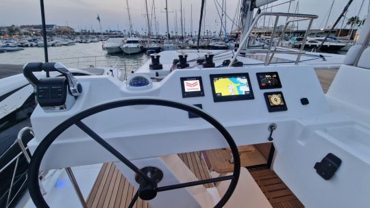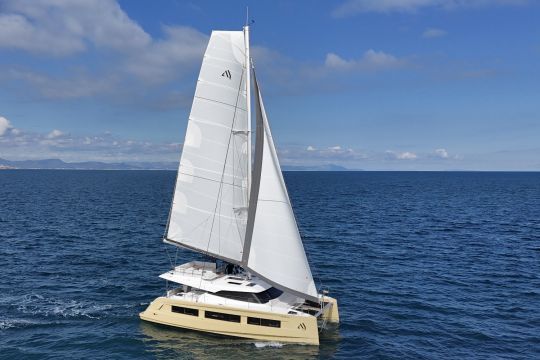 Con una superficie velica di quasi 115 metri quadrati e un armo arretrato sulla tuga, l'Aventura 45 privilegia la distribuzione dei carichi e la visibilità. La scelta di un genoa ad alta copertura installato sulla tuga, senza l'opzione di un fiocco autovirante, dimostra l'impegno per le prestazioni a scapito di una gestione semplificata.