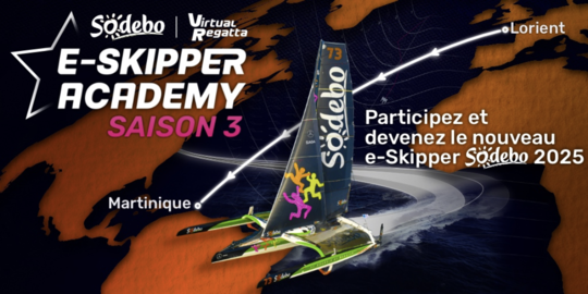 Sodebo e Virtual Regatta rilanciano la E-Skipper Academy per la terza edizione, con in palio un ruolo ufficiale di rappresentante virtuale del Team Sodebo alla Transat Café L'Or 2025. Dal 21 maggio, i candidati partiranno per una regata di qualificazione tra Lorient e Martinica sulla Virtual Regatta Offshore. I primi 200 classificati passeranno alla fase finale, combinando prestazioni, personalità e spirito di condivisione. Il vincitore navigherà a bordo del Sodebo Ultim 3 prima di partecipare alla regata transatlantica virtuale con i colori del team. Un ponte unico tra il mondo reale e l'universo digitale.