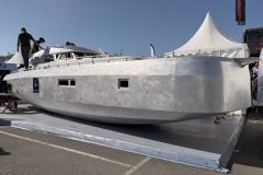 Lo scafo è rinforzato con una rete di carbonio triangolata e le piastre della catena sono tagliate digitalmente.