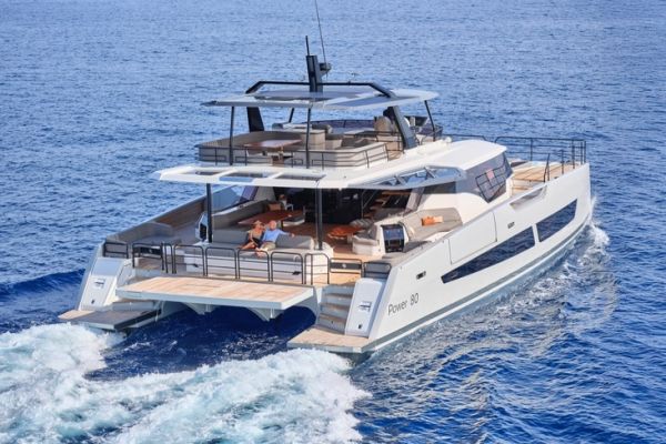 Il Power 80 è il nuovo yacht a motore di Fountaine Pajot, direttamente derivato dall'FP 80 a vela. Questo catamarano a motore si rivolge a chi cerca la crociera oceanica nel comfort di uno yacht di oltre 23 metri. Che si tratti del lancio di una nuova gamma o di una versione a motore di un modello esistente, con questo modello il cantiere di La Rochelle si sposta verso l'alto, pur mantenendo i codici estetici della sua serie.