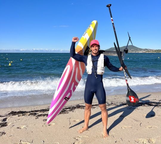 A 32 anni, Tom Constant ha appena realizzato una performance straordinaria nel mondo del foiling. Partito all'alba da Palavas-les-Flots, ha raggiunto la spiaggia di Almanarre a Hyères dopo 7 ore e 37 minuti di sforzo continuo, trasportato unicamente dalle onde e dalla forza delle sue gambe.