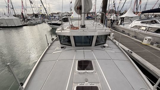 Presentato al Grand Pavois de La Rochelle 2025, l'Isméria 45 incarna un nuovo approccio alla crociera oceanica con equipaggio ridotto. Costruito dal cantiere Bord à Bord in Bretagna su progetto di Vincent Lebailly Yacht Design, questo yacht in alluminio di 13 metri è stato progettato per una coppia che di solito viaggia in bicicletta. Volevano uno yacht che fosse adatto a una vita a bordo a lungo termine. L'Ismeria fa parte di una nuova gamma del cantiere Bord à Bord, Ogham, che riunisce yacht di produzione che possono essere modificati dall'armatore. Una posizione intermedia tra la piccola serie e il pezzo unico.