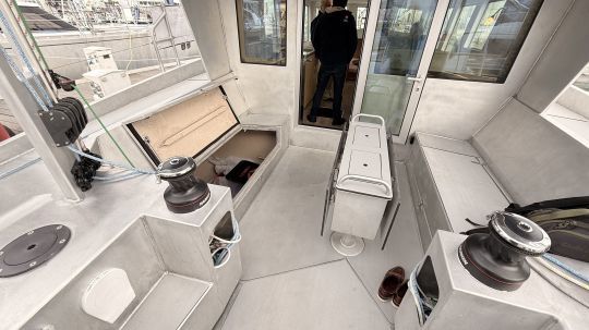 Una delle caratteristiche speciali di questo yacht è il flusso fluido tra il pozzetto e la zona giorno interna, senza gradini o discese ripide. Il concetto di "monomarano" ottimizza lo spazio e la vista a 360 gradi dall'interno, con finestre verticali della tuga molto ampie. La postazione di guida interna, integrata nel design del salone di coperta, consente al timoniere di governare dal riparo, mantenendo la visibilità a prua grazie alle finestre invertite. Sorprendentemente, gli armatori non hanno voluto un timone esterno nel pozzetto, ma questo è possibile su richiesta.