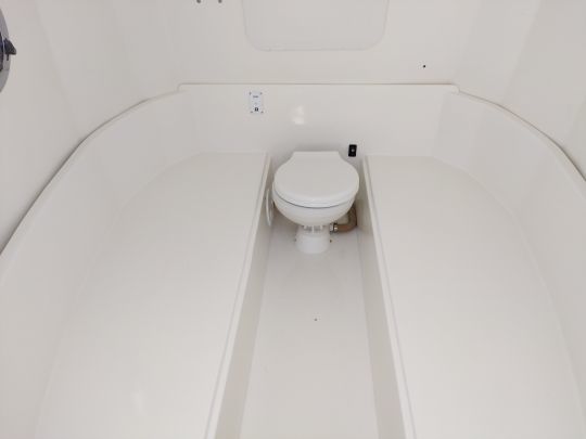 Il pozzetto si distingue per il volume e la disposizione razionale. La console, alta 1,44 m, si apre sul davanti e ospita un vano portaoggetti o una cuccetta supplementare (1,75 x 1,44 m). Questo vano può anche essere dotato di un WC marino o chimico opzionale.