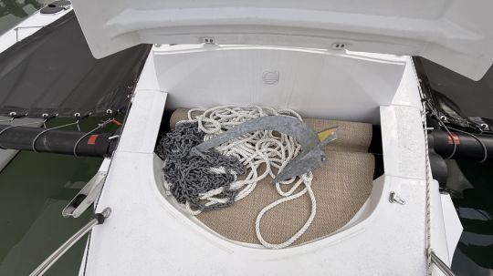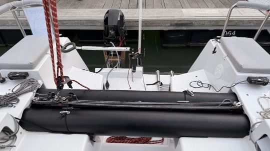 Per quanto riguarda le appendici, il daggerboard girevole e il timone sollevabile aumentano la sicurezza in acque basse o congestionate. Il pescaggio varia da 0,35 a 1,80 metri. Questa scelta tecnica, abbinata a un dislocamento leggero di 1.100 kg, consente di mettere a mare l'imbarcazione senza alcun vincolo. Lo scafo in infusione offre un buon compromesso tra leggerezza, rigidità e costi di produzione. L'equipaggiamento di coperta rimane semplice, con un pozzetto protetto da una rete. Sulla sedia può essere montato un motore fino a 10 CV.