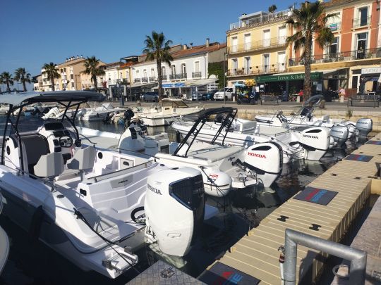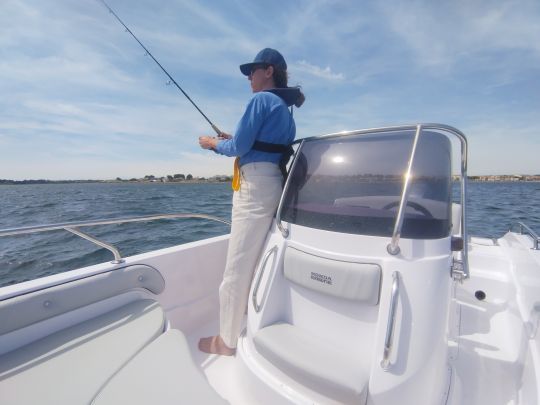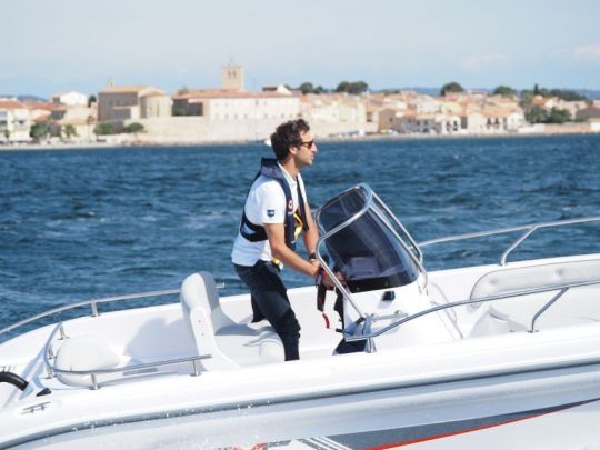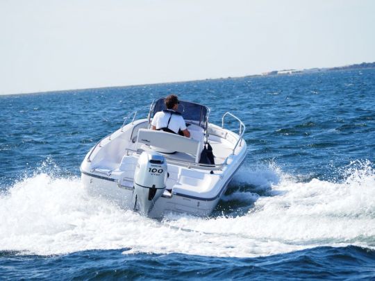 Con il motore acceso, l'Honda BF100 è all'altezza della sua reputazione di unità lineare, discreta e con una coppia abbondante. A 14 nodi, l'imbarcazione decolla senza sforzo, aiutata dalla carena a gradini che solleva rapidamente lo scafo. L'assetto rimane orizzontale e l'imbarcazione passa attraverso le acque increspate senza beccheggio eccessivo. Anche con tre persone a bordo, il baricentro rimane ben centrato, a riprova di una distribuzione dei pesi attentamente studiata.