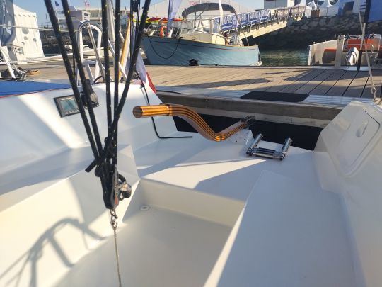 È sparito anche il binario della randa che ostacolava la circolazione. Il punto di tensione della randa si trova ora su una piastra per catene sul fondo del pozzetto, che può essere facilmente rimossa per consentire al boma di sporgere quando la barca è all'ancora.