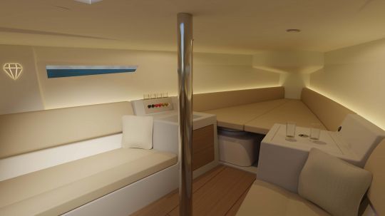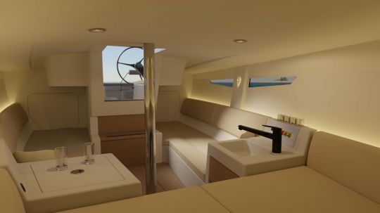Il Leopard vanta 4 cuccette vere e proprie e una piccola cucina. Gli interni sono luminosi e moderni. Con una lunghezza dello scafo di 8,40 m (9,20 m con bompresso), lo spazio a bordo rimane limitato, ma sembra utilizzabile per i fine settimana più lunghi. Si tratta pur sempre di una barca da giorno, ma versatile, con ampi spazi abitativi.