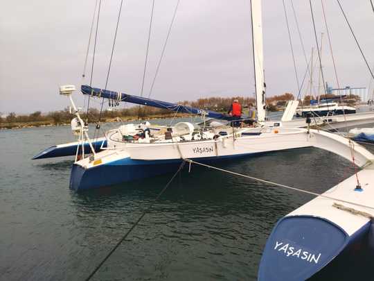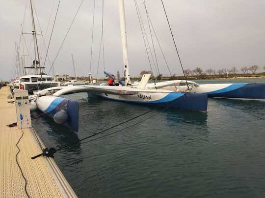 Questa barca aveva una storia. Con Loïckâeuros¯Peyron, era sulla bocca di tutti nella classe ORMA. L'ho presa perché si è presentata l'occasione e perché volevo un trimarano potente che fosse un po' fuori dal circuito abituale. Avrei chiaramente preferito regatare nella classe Oceanâeuros¯Fifty, ma con il numerus clausus di questa classe, non c'era nessuna barca disponibile. Così siamo passati a questa ex-EurosORMA. Ora dovremo modernizzarla, pur conservando il suo DNA.