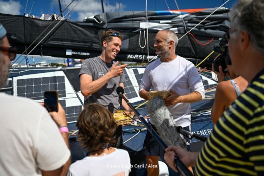 Fabrice Amedeo e Andreas Baden formano l'equipaggio del monoscafo FDJ United-Wewise che partecipa alla Transat Cagé l'Or 2025. Li incontriamo in banchina, prima che salpino, per un'intervista priva di gergo tecnico ma ricca di umanità. Tra umorismo, lucidità e trasmissione, i due velisti ci svelano un'altra sfaccettatura del loro duo.
