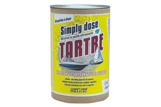 SIMPLY TARTRE si presenta sotto forma di compresse compatte, rosse e profumate al limone, contenenti il 100% di principi attivi. Confezionato in una scatola di cartone riciclabile, il prodotto occupa pochissimo spazio, un punto sensibile a bordo. La soluzione preparata può essere conservata fino a 15 giorni.