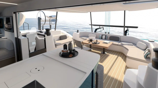 Progettata per rimanere autonoma per lunghi periodi, l'imbarcazione offre una grande capacità di stoccaggio, un salone panoramico, una spaziosa suite armatoriale e volumi paragonabili a quelli di un catamarano di 70 piedi.