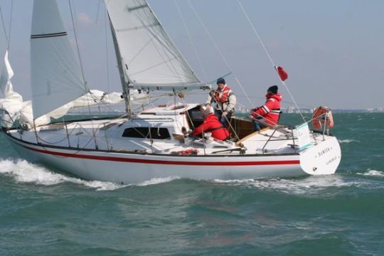 Damien è un monoscafo a sloop Marconi su progetto dell'architetto inglese Robert Tucker. Lungo 10,10 metri e con un dislocamento di 5 tonnellate, è costruito in legno stampato (quattro strati di mogano da 5 mm) presso il cantiere Nautic Saintonge di Saujon (17). Il progetto è incentrato su semplicità, resistenza e leggerezza, con un baglio di 3,08 metri e un pescaggio di 1,45 metri. È zavorrata a 1,6 tonnellate e alimentata da un motore Couach BD2 da 15 CV.