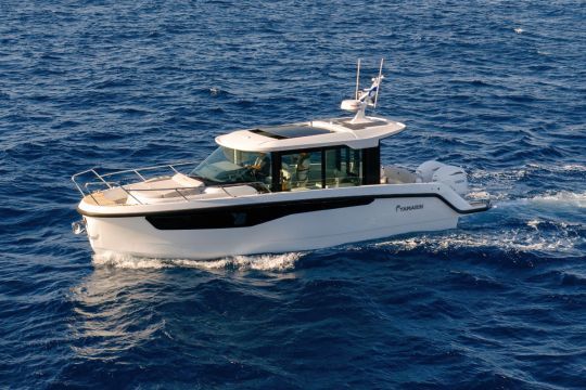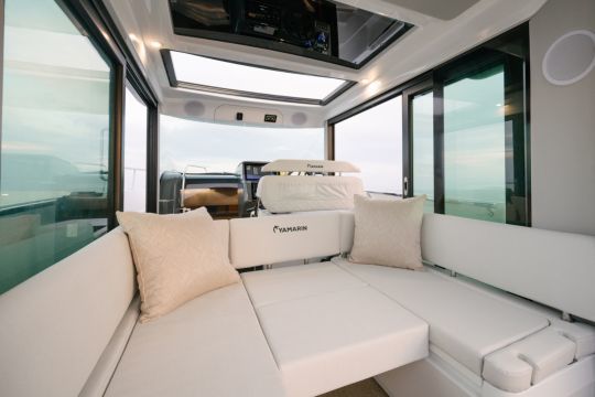Con una lunghezza di 10,40 m e potenti motori gemelli, l'Aura Cabin si colloca chiaramente al vertice della gamma Yamarin. Il cantiere presenta questo modello come una sintesi della sua esperienza nordica e della sua apertura a usi più internazionali.