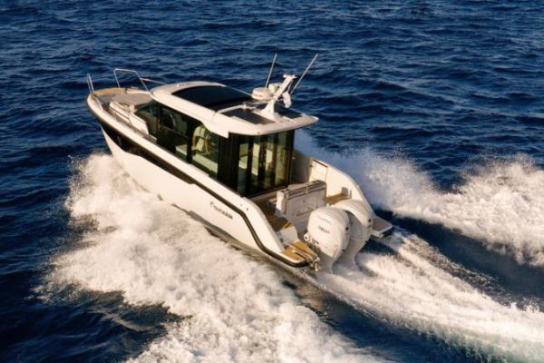 Il cantiere offre una propulsione esclusivamente con due motori fuoribordo Yamaha. Sono disponibili tre configurazioni: 2x250 CV, 2x300 CV e 2x350 CV. Questa scelta orienta chiaramente il programma verso alte velocità di crociera e una comoda riserva di potenza, anche a pieno carico.