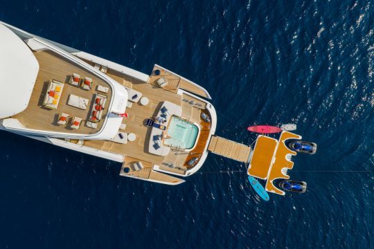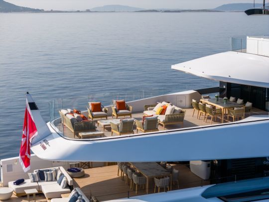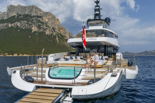 La poppa è uno dei tratti distintivi dello yacht. Si sviluppa su tre livelli strettamente collegati, ispirati al mondo della vela. L'obiettivo è chiaro: molteplici usi senza compartimentazione.