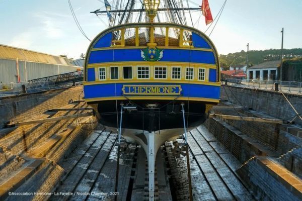 Creata nel 1992 a Rochefort, l'Associazione Hermione La Fayette aveva come missione la ricostruzione della fregata che trasportò il marchese de La Fayette negli Stati Uniti nel 1780, al culmine della guerra d'indipendenza americana. Nel settembre 2025, le difficoltà finanziarie portarono all'apertura di un'amministrazione controllata. L'attesa decisione del Tribunale commerciale di La Rochelle determinerà la sopravvivenza legale della società e il futuro operativo della nave. La proroga del periodo di osservazione consentirebbe di consolidare un progetto redditizio. La liquidazione porrebbe fine all'associazione, con tutte le incertezze che ciò comporta per l'imbarcazione.