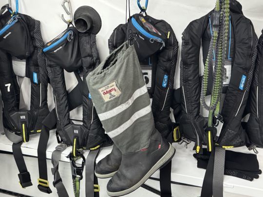 A bordo, l'atmosfera è ancora quella della gara. Gli spazzolini da denti dei sette membri dell'equipaggio sono al loro posto. Nulla è stato spostato, come se l'equipaggio avesse appena lasciato la barca per qualche ora. A suo modo, l'alloggio riflette l'intensità della navigazione, con volumi limitati, organizzati per l'efficienza piuttosto che per il comfort.