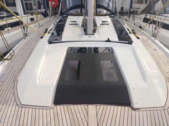 Queste dimensioni si traducono in una silhouette con chines e prua piena. A bordo, l'effetto è più evidente nella parte anteriore, con la cabina armatoriale che vanta un volume che, fino a qualche anno fa, era più comune sulle barche più lunghe.