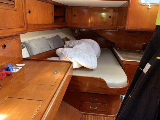 La tappezzeria e i materassi in pelle sono stati rinnovati nel 2021. La stazione di navigazione, ben separata, presenta un'elettronica modernizzata con apparecchiature B&G e Raymarine e un VHF AIS installato nel 2022. Due tracciatori, uno al timone e un secondo per l'equipaggio, garantiscono una navigazione sicura.