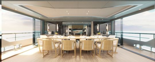 Nel settore della nautica da diporto è in atto una chiara tendenza a una maggiore fluidità di movimento tra interni ed esterni e a un maggior numero di terrazze e aree multifunzionali. Un beach club che può essere trasformato da salone a palestra o cinema non è solo una questione di immagine, ma anche di utilizzo.
